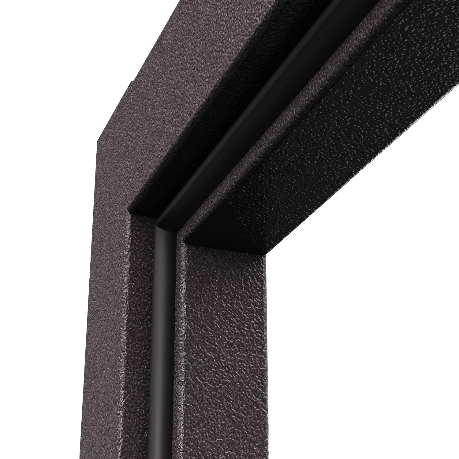 Короб и полотно двери изготовлены из холоднокатаной листовой стали на высокотехнологичном оборудовании, все сварные швы выполнены на роботизированных комплексах – они равномерные и прочные. Это означает дверь в проем встанет ровно, выглядеть будет аккуратно, и служить долго. Дополнительную прочность полотна обеспечивает каркас из композитного материала, проходящий по его внутреннему периметру. Наполнение полотна – пенополистирол, проложен по всему объему. Он обеспечивает функцию теплошумоизоляции. Глубина короба 60 мм, толщина полотна 45 мм. Прочность конструкции соответствуют требованиям ГОСТ. Вы можете доверить этой двери сохранность имущества.