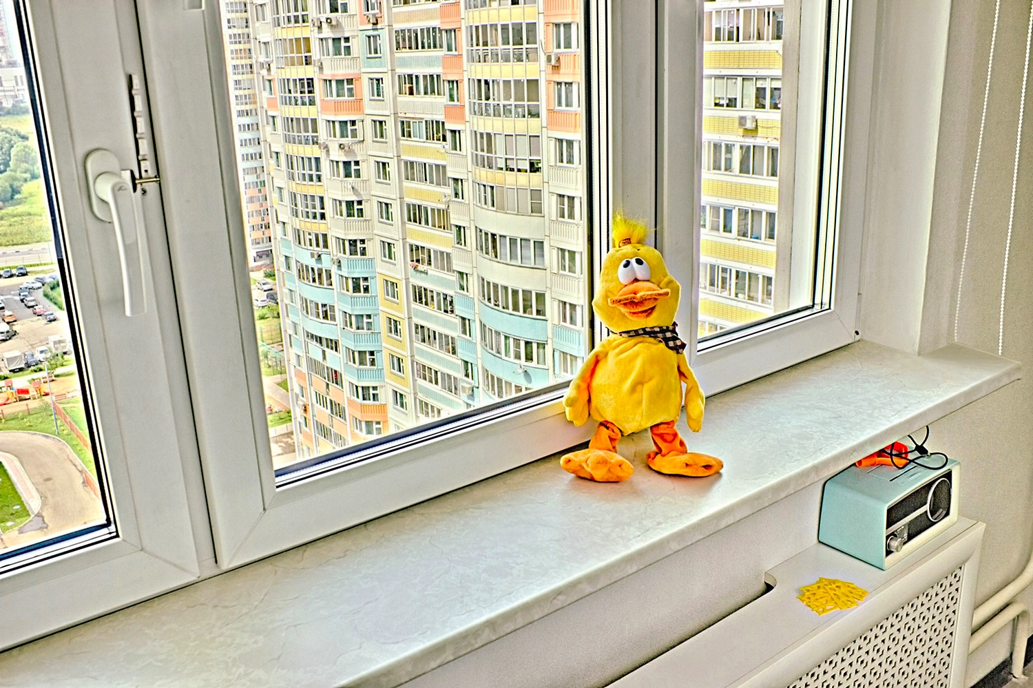 Подоконник из высокопрочного материала LIGNODUR. Основа – смесь ПВХ и древесной муки. Для соединения с декоративным многослойным ламинатом ELESGO-PLUS on top используется полиуретановый клей-расплав KLEIBERIT.