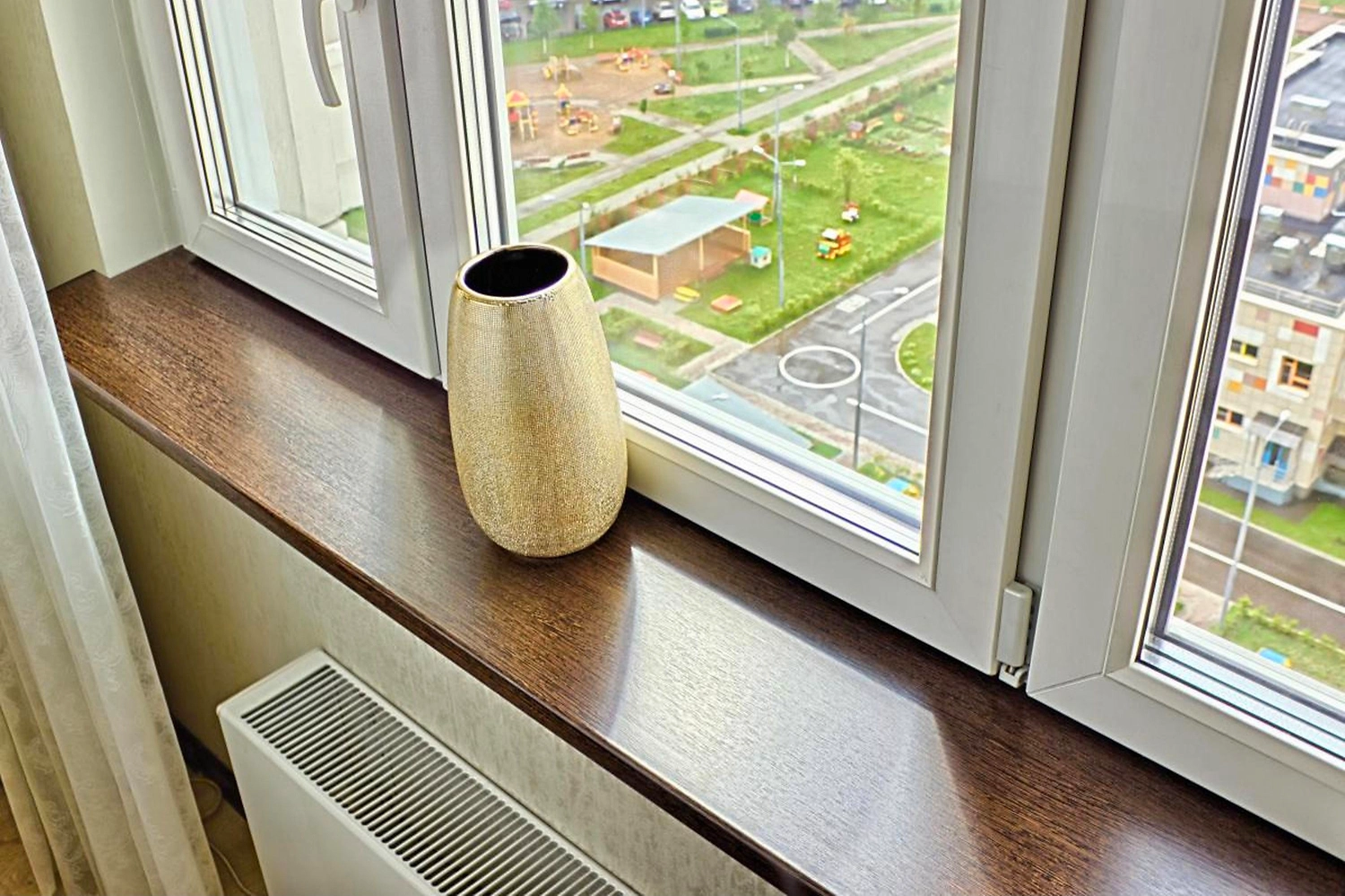 Подоконник из высокопрочного материала LIGNODUR. Основа – смесь ПВХ и древесной муки.