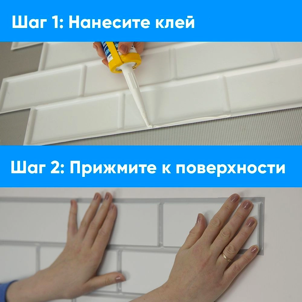 - Легкий монтаж с помощью универсального клея для пластика, на любую поверхность - старые обои, кафель, бетон, краска