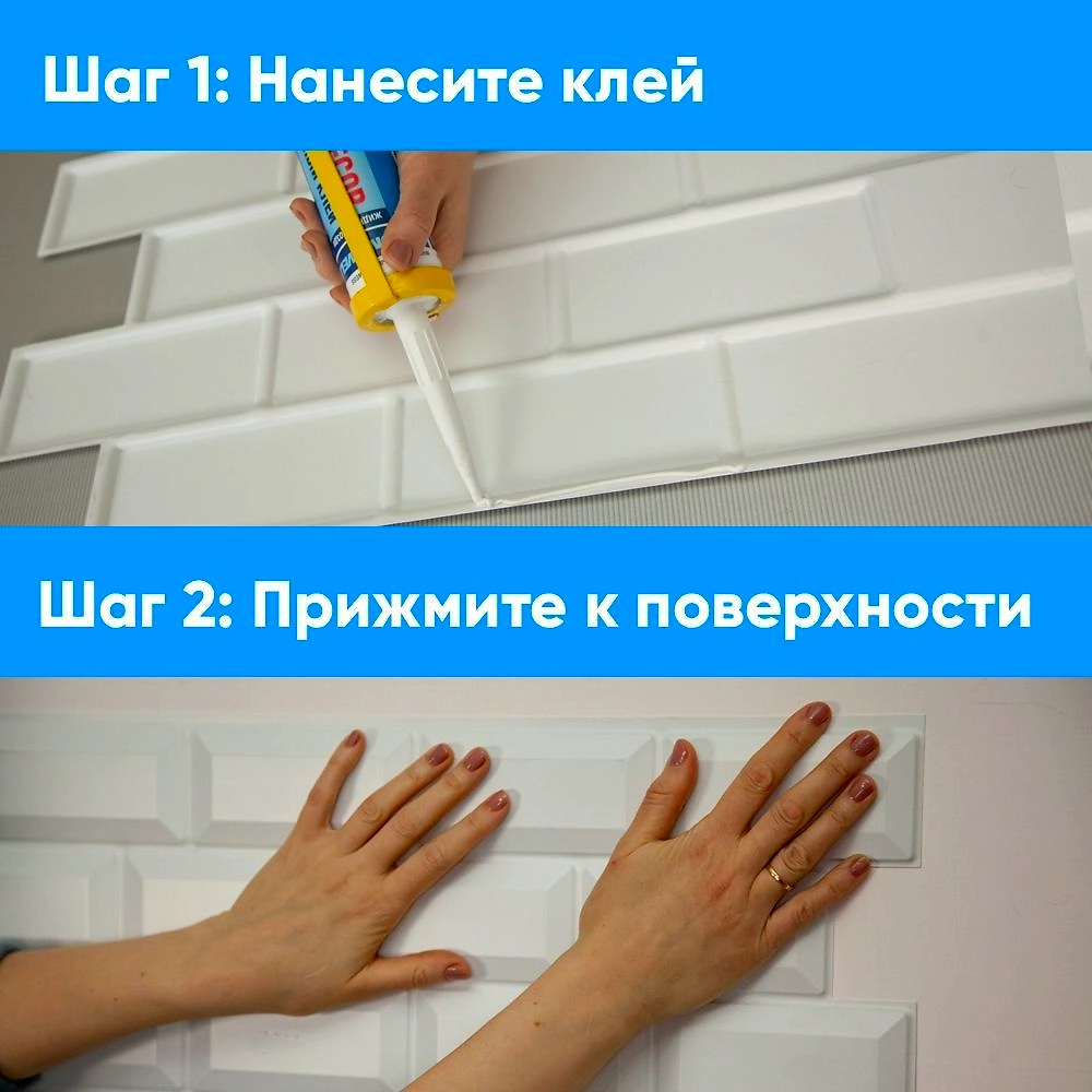 - Легкий монтаж с помощью универсального клея для пластика, на любую поверхность - старые обои, кафель, бетон, краска