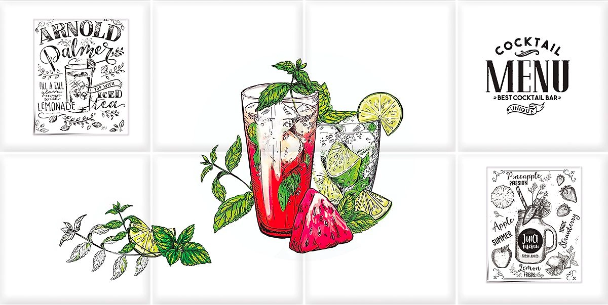 Отправляясь в отпуск, мы любуемся прекрасными видами, греемся на солнце.Коктейли любят из-за сочетания цветов и вкусов. Эстетическая сторона играет огромную роль при приготовлении напитка. И тем же может похвастаться наша керамическая плитка бренда Azori из коллекции CoctailBar, которая совместила в себе все самое яркое и сочное. Цвета данной коллекции являются приглушенными, мягкими, контраст создают графичные линии, которые выделяют объект и приковывают взгляд. Цветовая гамма мысленно рисует образ свежести, мяты и душистых трав. Она наполняет пространство запахом лета и дачных ягод. Мятный прекрасно сочетается с разнообразной палитрой цветов, но классической считается комбинация с пастельными тонами: белым, песочным, пудровым, бежевым. Стоит отметить, что цвет мяты не теряется и на фоне насыщенных красок, и потому может служить как нейтральным фоном, так и ярким акцентом. Основной фон плитки добавит чувство расслабленности, спокойствия. Поэтому она идеально подходит для кухни, где вы точно будете создавать кулинарные шедевры с душой и свежими мыслями. Дизайн кухни с коллекцией плитки CoctailBar выглядит стильно и современно.