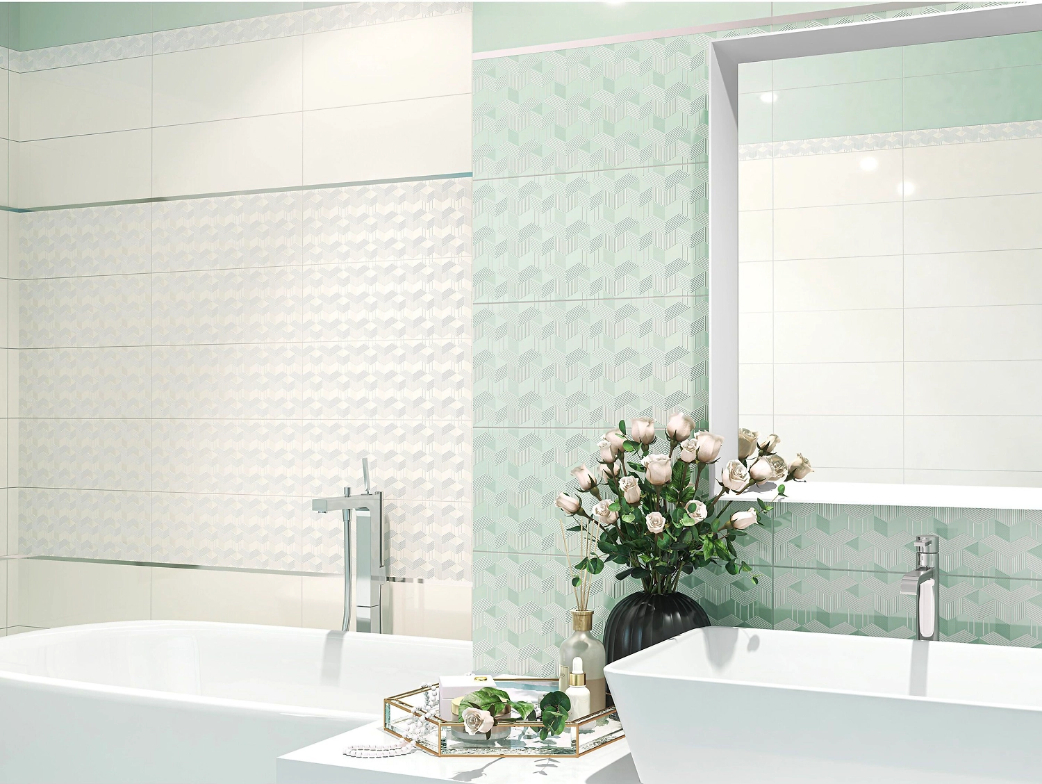 Декор Azori Lounge Mint Geometria светло-зеленый 50,5х20,1 см используется для внутренней отделки санузлов с керамической облицовкой стен.