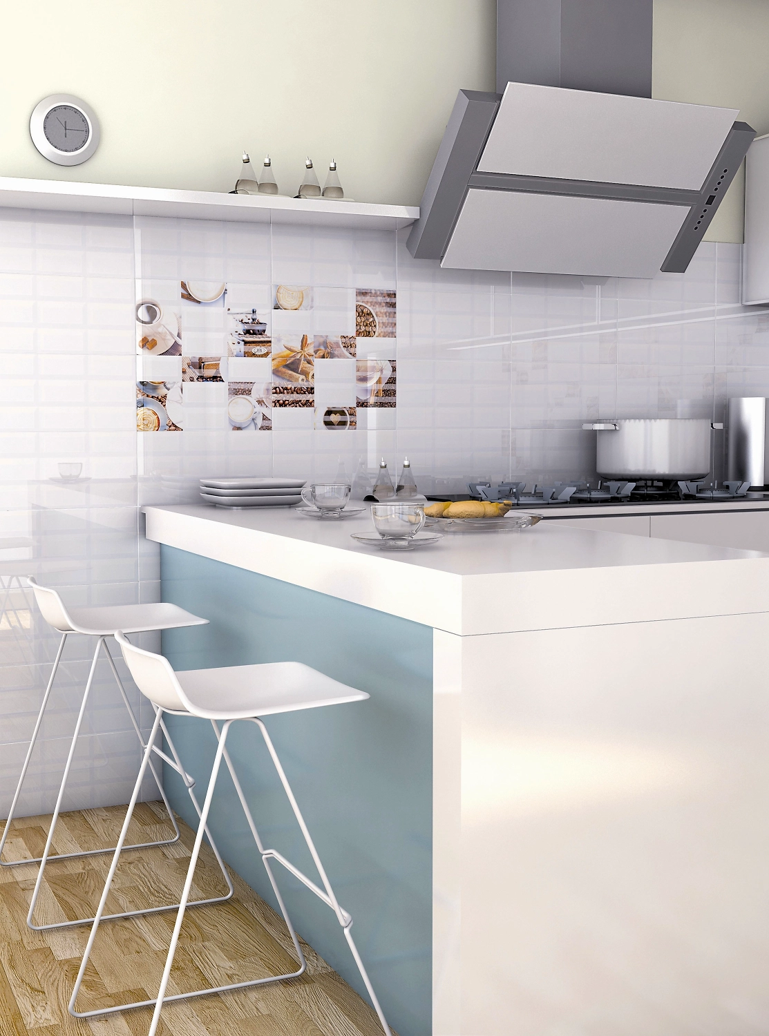 Коллекция керамической плитки Вог - сочетание классической плиты с глянцевой поверхностью и современного декора. Декоры представлены в двух стилистически направлениях, что нашло отражение в названиях декоративных элементов. Особенность данных декоров в возможности выкладки - их можно разместить, как единое панно из 4-х плит, так и хаотично в разброс, заполняя все кухонное пространство.