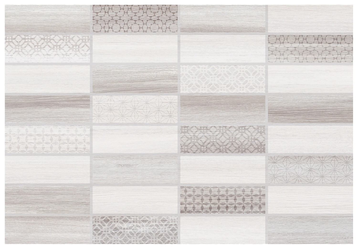 Декор КЕРАМИН Нидвуд - настенная плитка формата 40х27,5 см, подходящая как для горизонтальной, так и для вертикальной укладки. Кафель под дерево в отличии от натуральной доски может использоваться даже в помещениях с повышенной влажностью. Плитка украшена узором из узких плашек с фактурой дерева и вкраплениями орнамента. Декор в приятной серо-бежевой гамме подходит для классических и современных интерьеров.