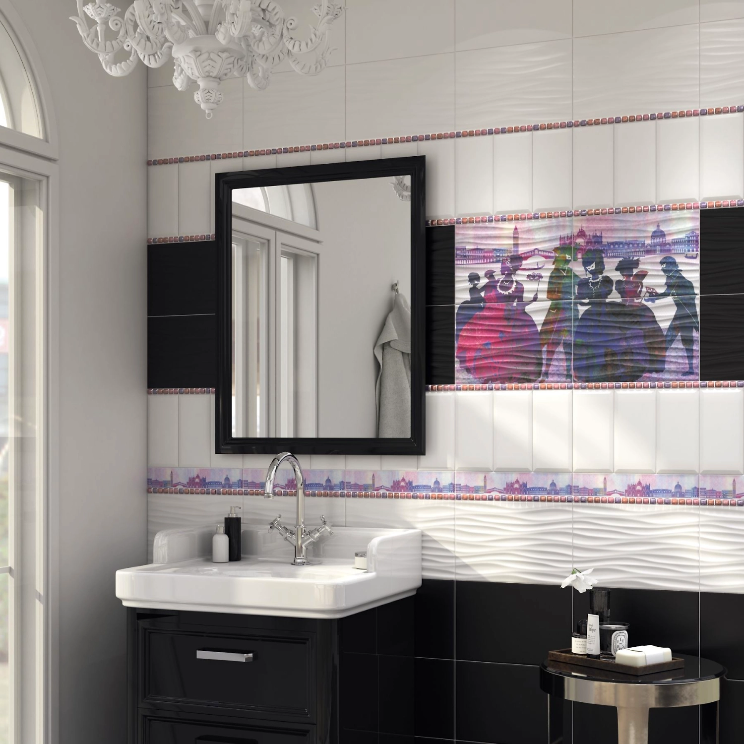 Плитка-карандаш Карнавал в Венеции предназначена для декоративного оформления ванных комнат. Идеально сочетается с фоновой плиткой и декором из одноименной коллекции.