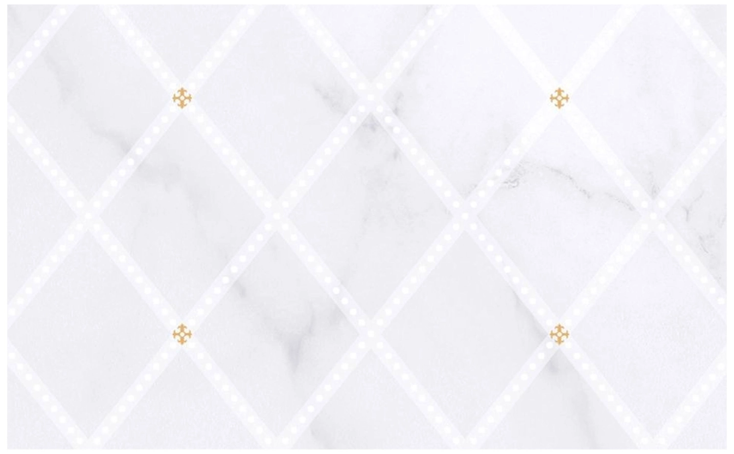 Керамический декор Unitile Life Милана выполнен в классическом английском стиле. Изящный узор в форме ромбов из жемчужной ветрозы выглядит легко и ненавязчиво, золотые геральдические кресты создают ощущение роскоши и респектабельности.