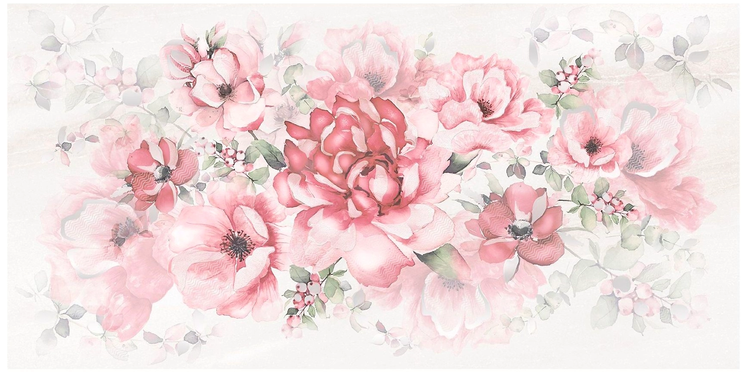 Керамическое панно AXIMA Фортуна - плитка с рисунком из крупных соцветий в приглушенной гамме. Светлый глянцевый кафель отражает и мягко рассеивает свет, визуально расширяет границы помещения. Элегантное дизайнерское решение подходит для элегантных классических и практичных современных интерьеров.