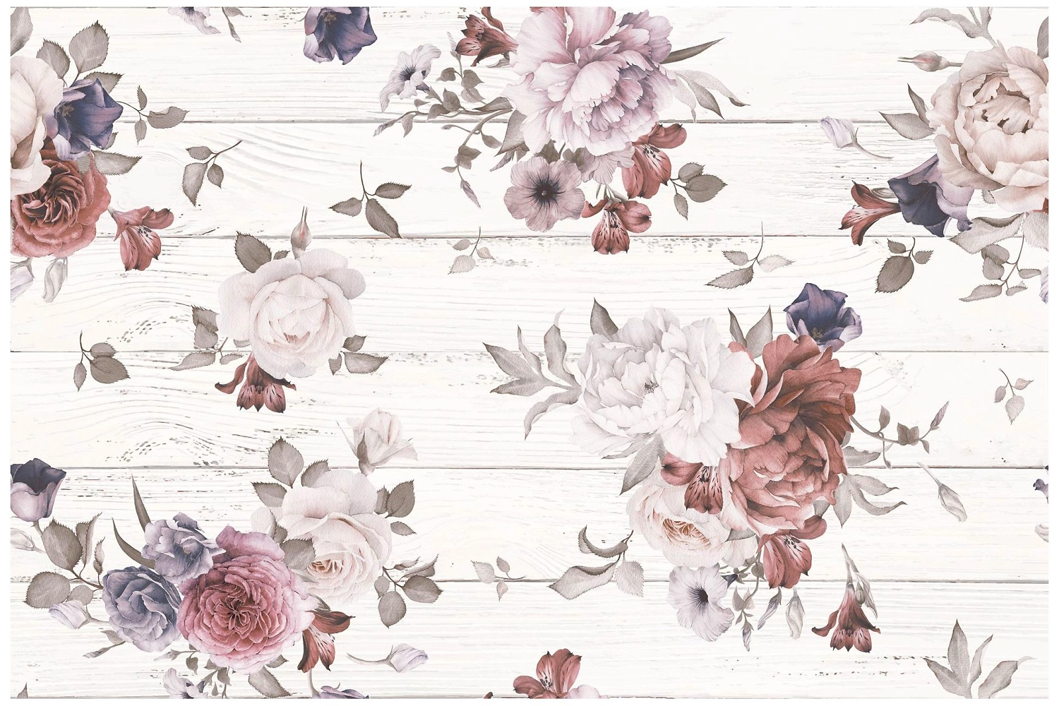 Керамическое панно LB CERAMICS Шебби-Шик - плитка с орнаментом из крупных цветов, нарисованных на фоне старинной крашеной доски. Элегантное дизайнерское решение подходит для интерьерных стилей шебби-шик, прованс, классика, модерн.