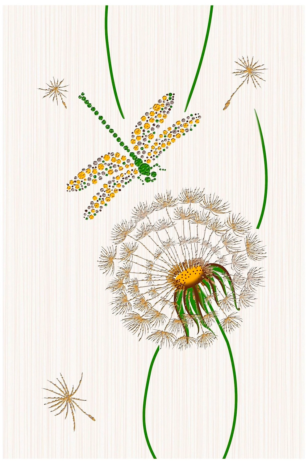 Создайте в доме легкое летнее настроение. Белая керамическая плитка с воздушными одуванчиками и порхающими стрекозами напомнит о теплых солнечных днях в любое время года.