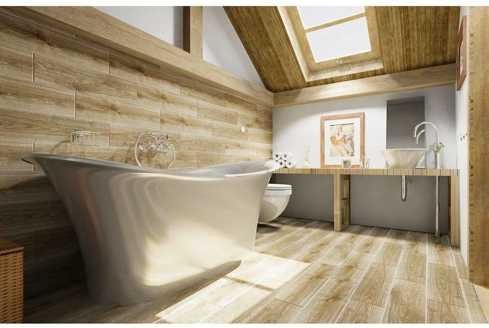 Узкая плитка формата 15х60 см имитирует паркетную доску. Покрытие с древесной фактурой делает интерьер уютным и выразительным. Такой пол особенно хорошо смотрится в помещениях, оформленных в стиле шале, рустик, скандинавский, кантри, прованс, неоклассика. Теплый, светлый оттенок прекрасно гармонирует с любой цветовой гаммой в отделке и декоре.