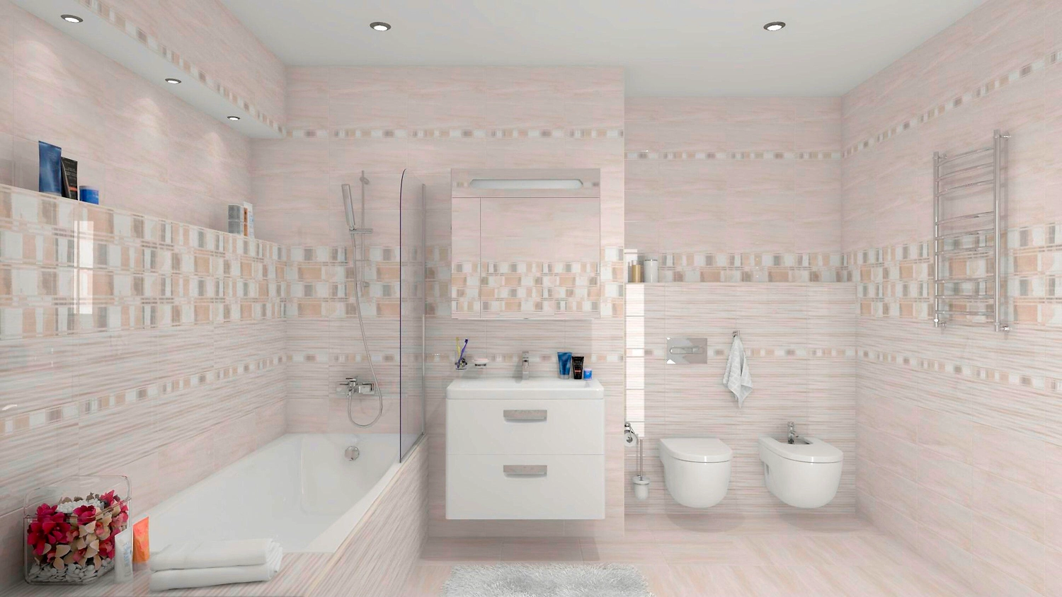 Керамическая плитка коллекции Atria от производителя Cersanit - безупречное сочетание нежности и самобытной колоритности. В основе коллекции лежит мягкий бежевый цвет, который способен визуально расширить пространство, и сделать его светлее и просторнее. Поэтому керамическая плитка выгоднее всего смотрится именно в небольших ванных комнатах. Поверхность имитирует натуральный камень, а ненавязчивый декор разбавляет однотонность фоновой плитки. Бордюры и вставки с оригинальным рельефным рисунком добавляют в интерьер скандинавские нотки.