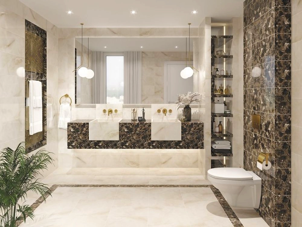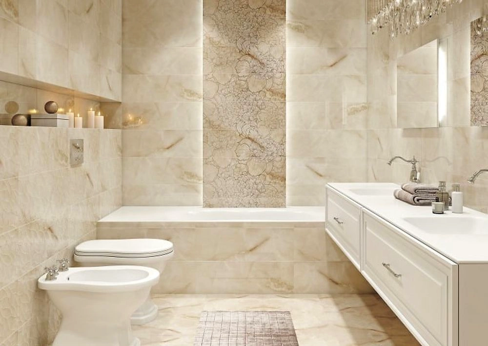 Элегантная коллекция керамической плитки IVORY - это сочетание мраморного рисунка и тонкого цветочного орнамента с серебряным эффектом.