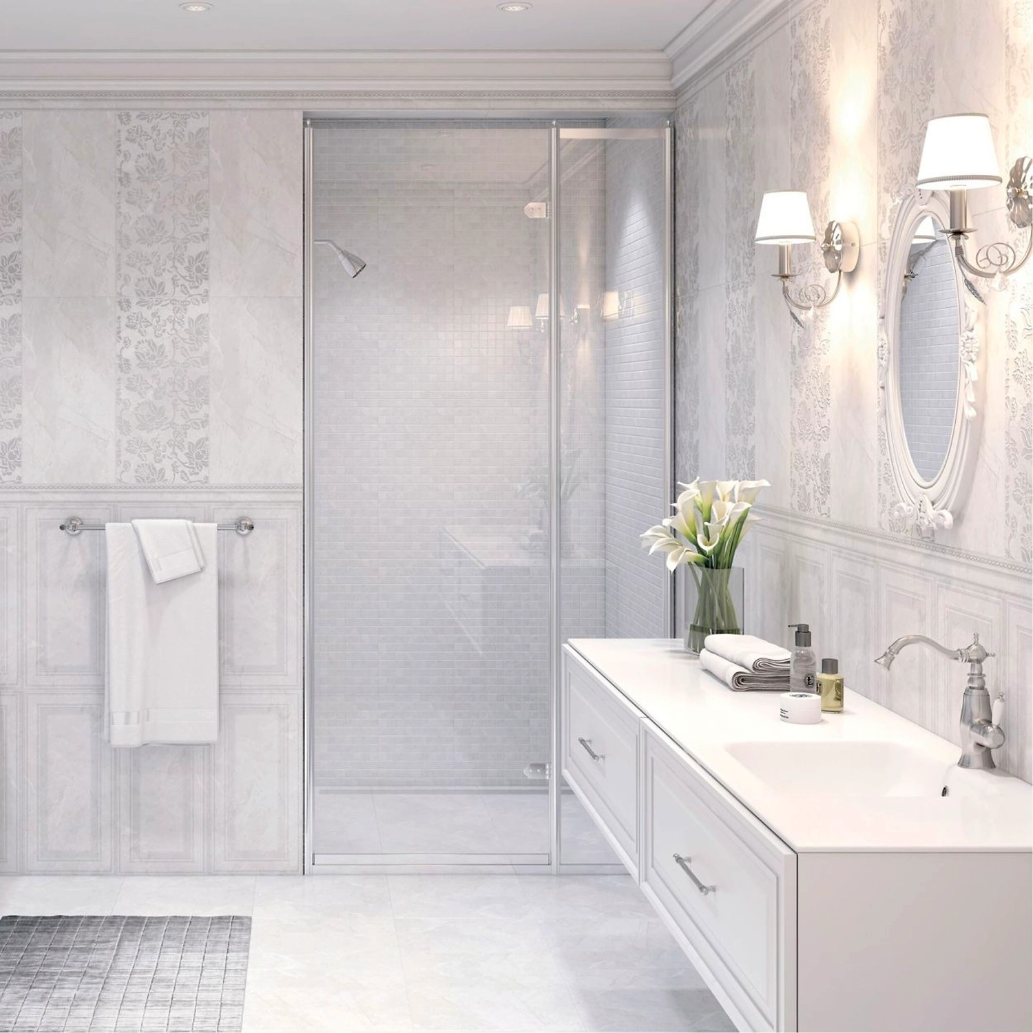 Керамогранит - современный отделочный материал, превосходящий по своим характеристикам натуральный камень. Покрытие под мрамор универсально, обладает неповторимым узором, подчеркивающим изысканность и эксклюзивность интерьера.