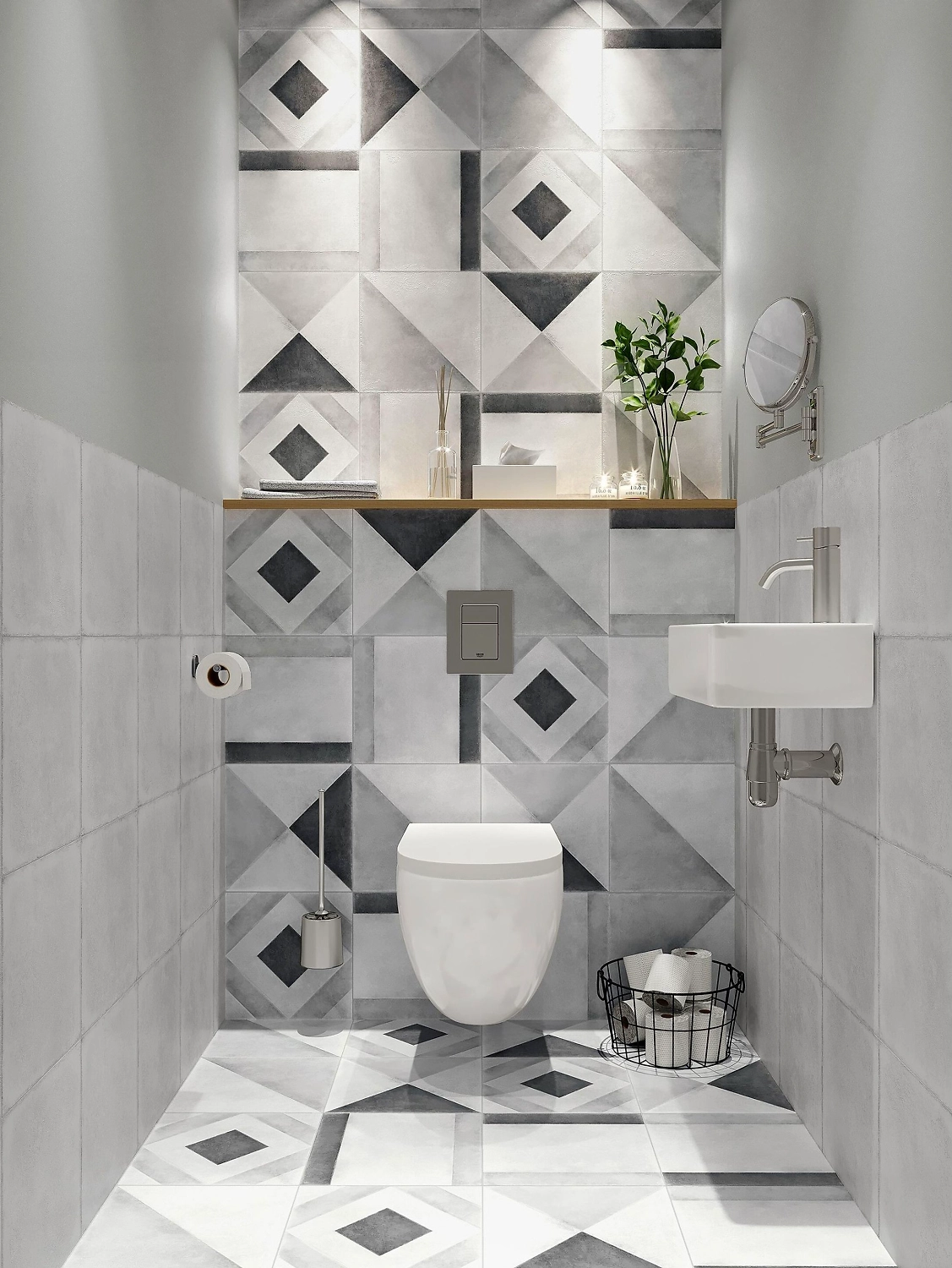 Коллекция Motley состоит из фоновой монохромной плитки, стилизованной под бетон, и декоров в ультрамодном стиле пэчворк с геометрическим рисунком или цветочным орнаментом. Сочетая разные элементы коллекции, из керамогранита можно выкладывать как классические ковры, так и эффектные современные композиции.