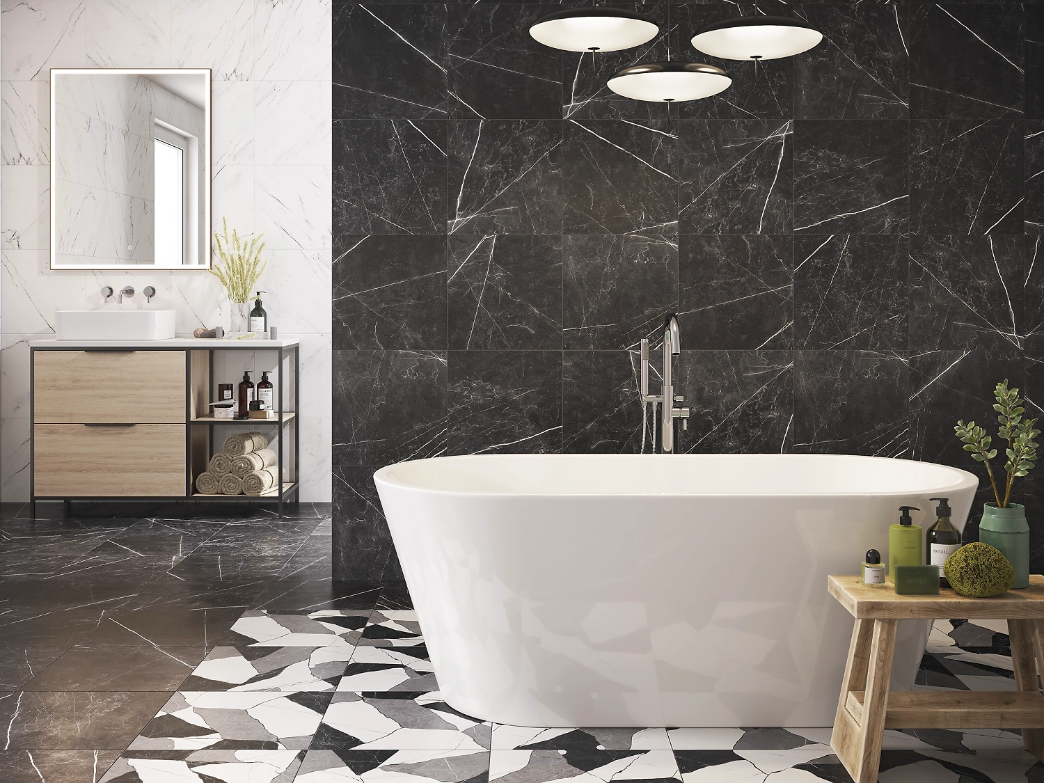 Дополнением белой "мраморной" коллекции керамогранита ORIENTAL стал серый и чёрный керамогранит формата 42х42 с ярким декором. Прочный отделочный материал имитирует мрамор и серый камень.