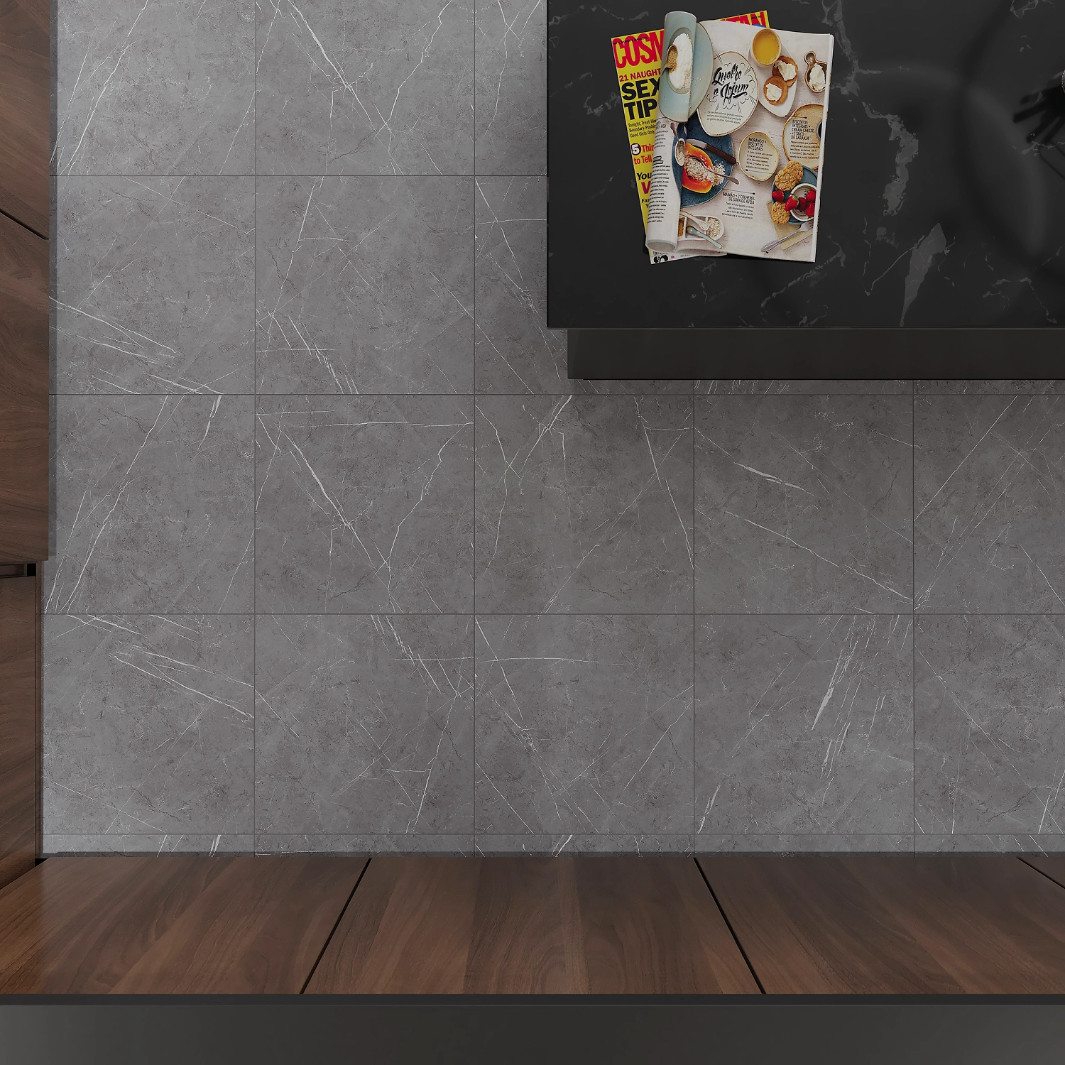 Дополнением белой "мраморной" коллекции керамогранита ORIENTAL стал серый и чёрный керамогранит формата 42х42 с ярким декором. Прочный отделочный материал имитирует мрамор и серый камень.