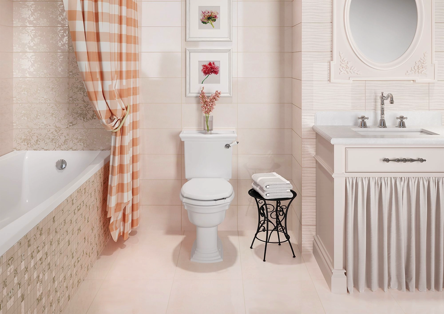 Новая коллекция VERSAL (ВЕРСАЛЬ) воспроизводит рисунок благородного мрамора и дополнена декоративными вставками с классическим орнаментом в стиле барокко. Сочетание гладкой плитки и волнистого рельефа позволяет акцентировать определенные зоны ванной комнаты. Изящный орнамент повторяется на напольной вставке, поддерживая общую концепцию дизайна. Коллекция дополнена декоративной мозаикой с вкраплениями фрагментов основного орнамента.