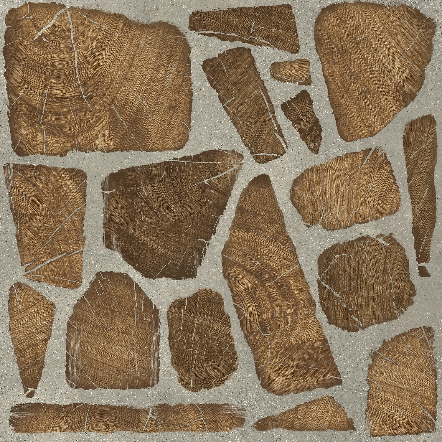 Основная идея коллекции Woodland - визуальный контраст небрежной красоты серого бетона и колоритных деревянных элементов. В линейке представлено несколько вариантов плитки для создания плавных переходов от цементного пола к покрытию с имитацией деревянной мозаики.