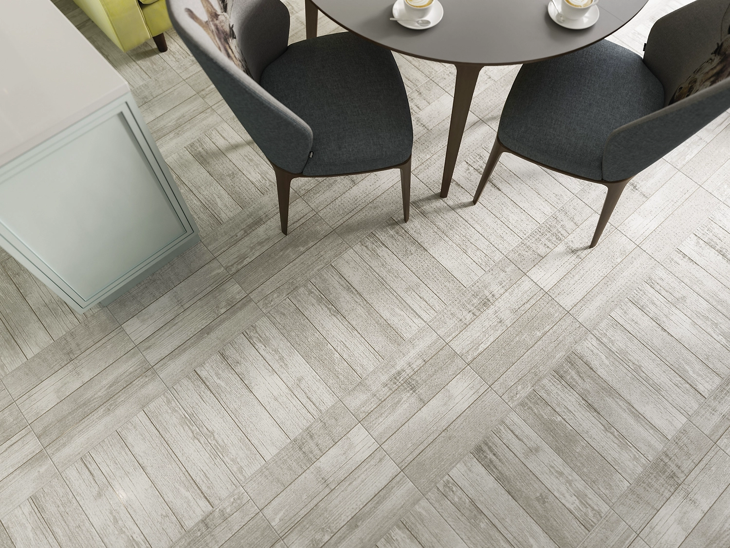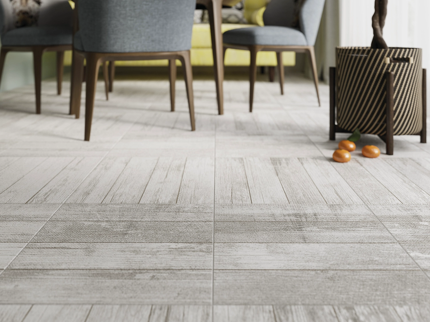 Керамогранит WOODSTORY формата 42х42 выполнен в двух цветовых решениях: холодный белый и сочетание сразу четырёх оттенков коричневого. Коллекция имитирует узкие доски и текстуру натуральной древесины.