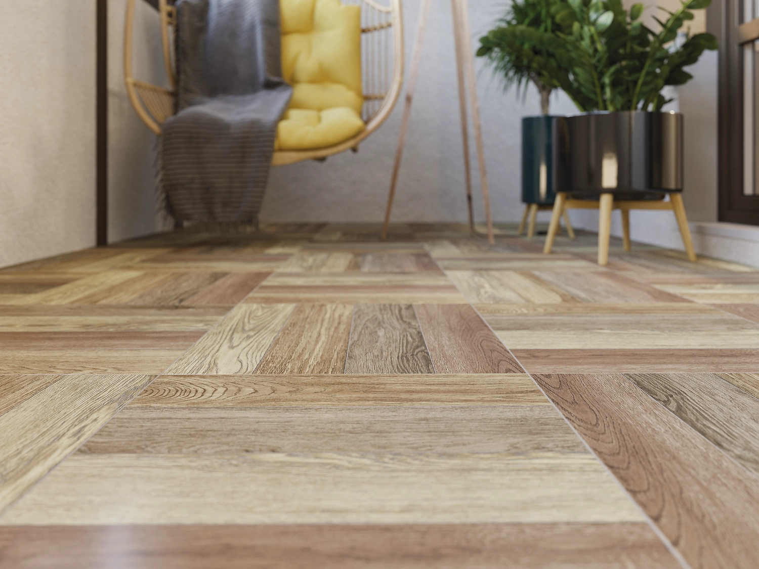 Керамогранит WOODSTORY формата 42х42 выполнен в двух цветовых решениях: холодный белый и сочетание сразу четырёх оттенков коричневого. Коллекция имитирует узкие доски и текстуру натуральной древесины.