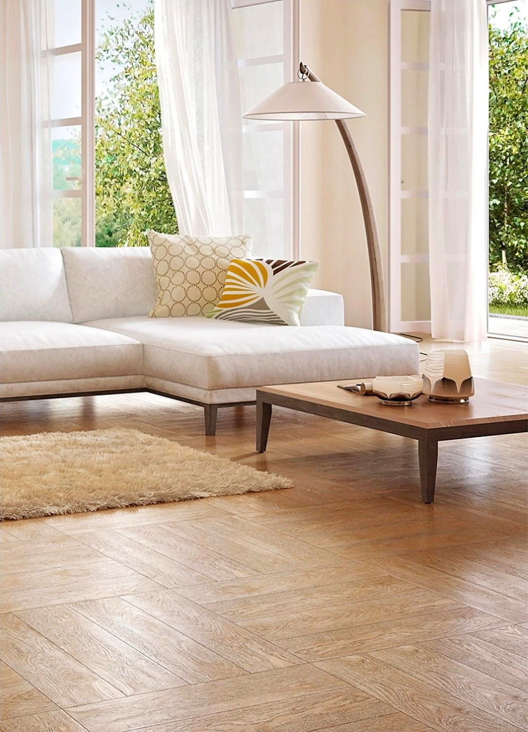 Среди основных достоинств модели: высокие эстетические качества и эксплуатационные свойства, практичность и легкость в уходе. Подходит для оформления полов гостиных и спальных комнат, загородных домов и офисов.