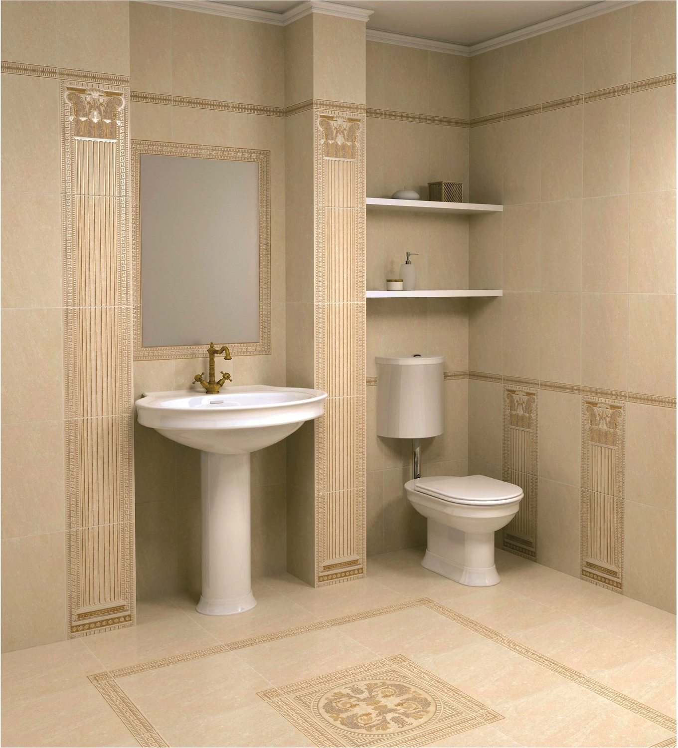 Коллекция Феличе вдохновлена эстетикой старой Италии - мягкие теплые тона, мраморные узоры, а также обилие декоративных элементов, панно и бордюров с традиционными итальянскими и греческими мотивами не оставят равнодушными ценителей этого стиля.