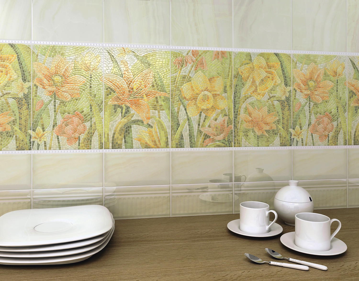 Плитка от KERAMA MARAZZI Летний сад визуально расширит пространство, добавит в интерьер ощущение свежести и чистоты.