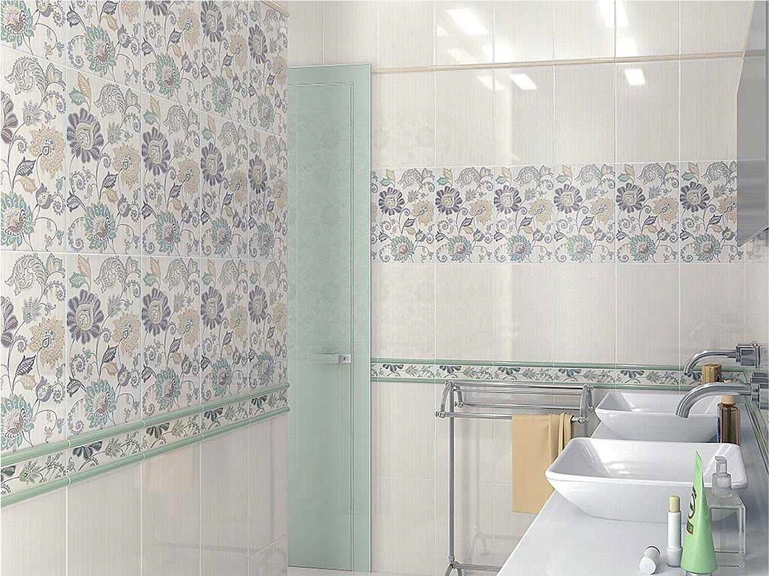 Керамогранит Луиза приятного бежевого оттенка добавит в интерьер ванной комнаты ощущение свежести и чистоты.