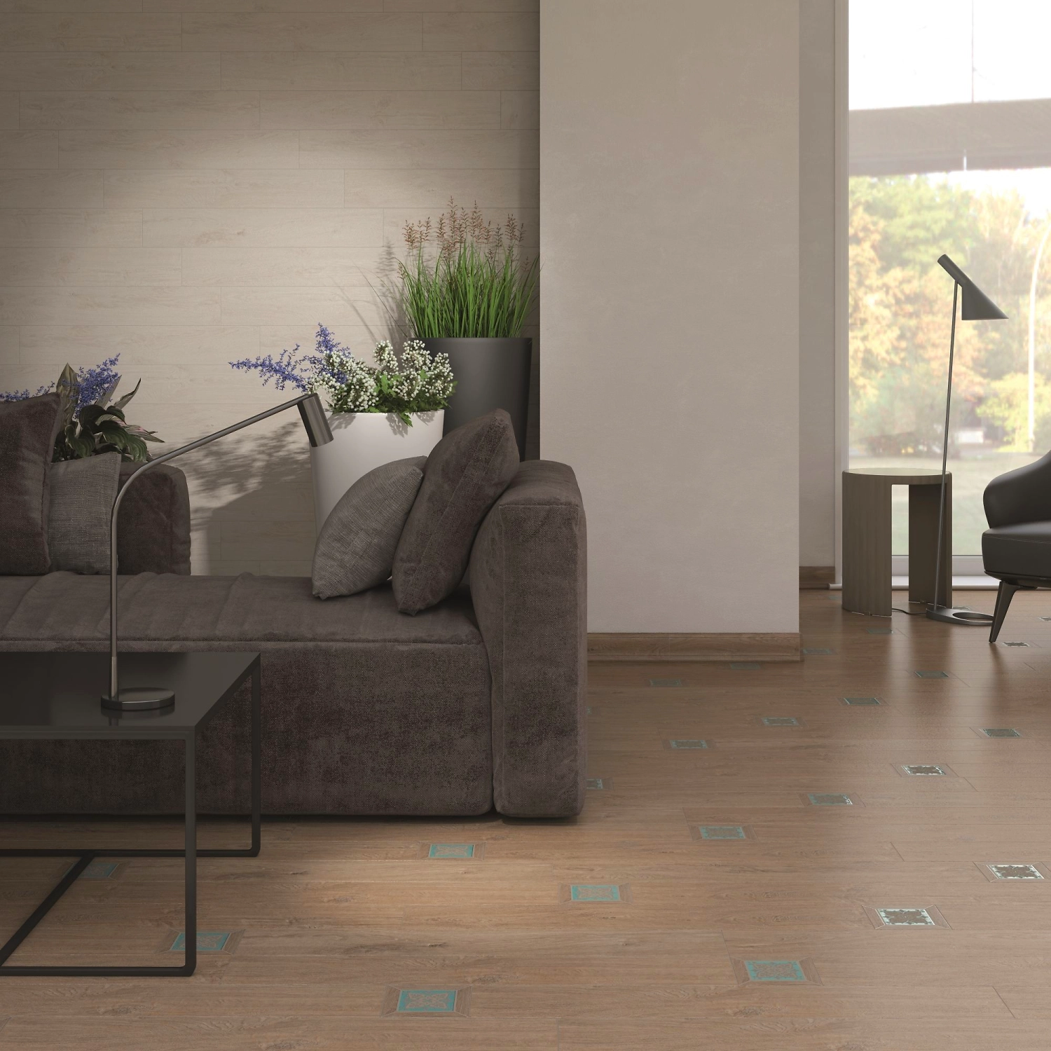 Керамическая напольная плитка белого цвета отлично подойдет для завершения интерьера в скандинавском стиле, однако хорошо себя покажет и в других интерьерах. Белый пол зрительно расширяет пространство, и делает помещение светлым и теплым. Матовая поверхность керамической плитки очень точно передает деревянную текстуру за счет чего отлично смотрится в жилых комнатах - гостиной или спальне. Плитка устойчива к истиранию и ультрафиолетовым лучам, поэтому отлично сохраняет все свои характеристики на протяжении долгих лет.