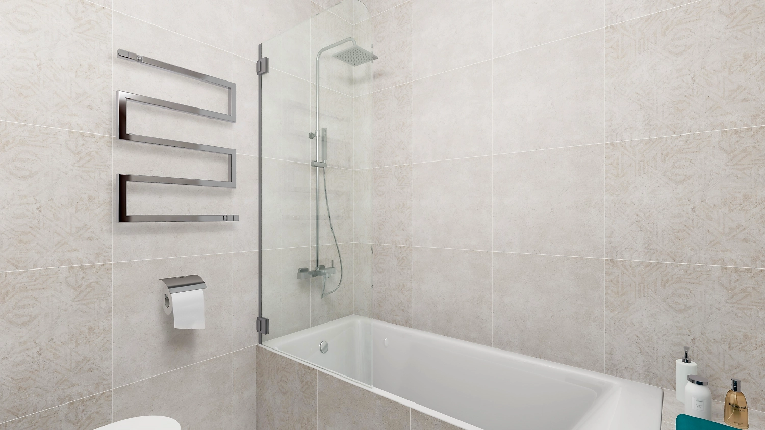 - Крупноформатная квадратная плитка удобна в работе, образует меньше швов.