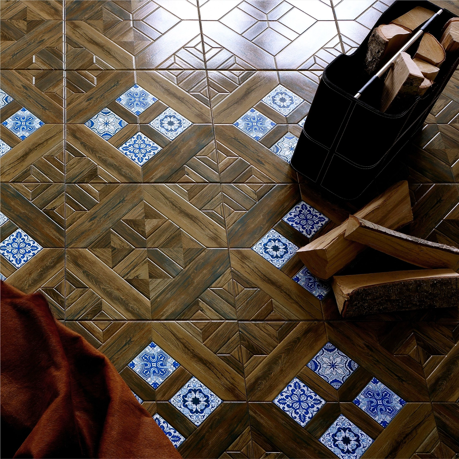 Шедевр итальянской классики. Если Вам по душе классические мотивы в интерьере, то коллекция Калабрия – для Вас. Деревянный паркет замысловатой укладки в сочетании с расписными вставками, выполненными в технике эмали в классических белом и синем цветах, безусловно, украсит любой дом.