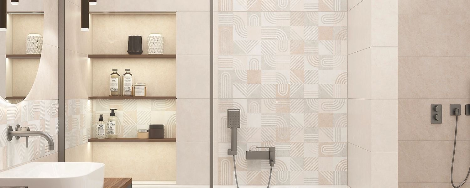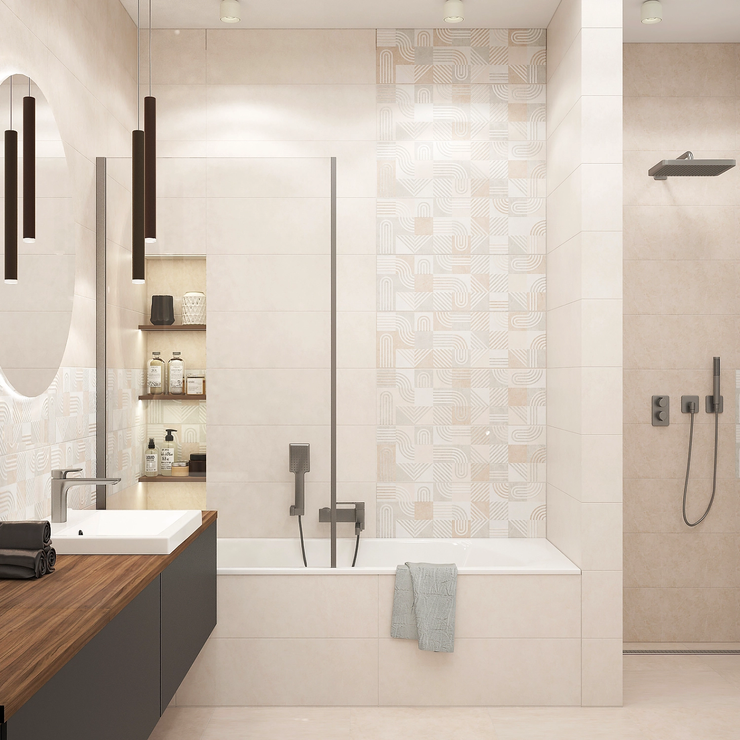 Фактура базовой плитки создана в стиле дизайна интерьеров роскошных арт-галерей Сохо. А два вида декоров: с оригинальными геометрическими мотивами и разнонаправленной шпаклёвкой, погружают вас в такую разную и манящую атмосферу мощеных улиц, элегантных зданий, кофеен и бутиков знаменитого Сохо.
