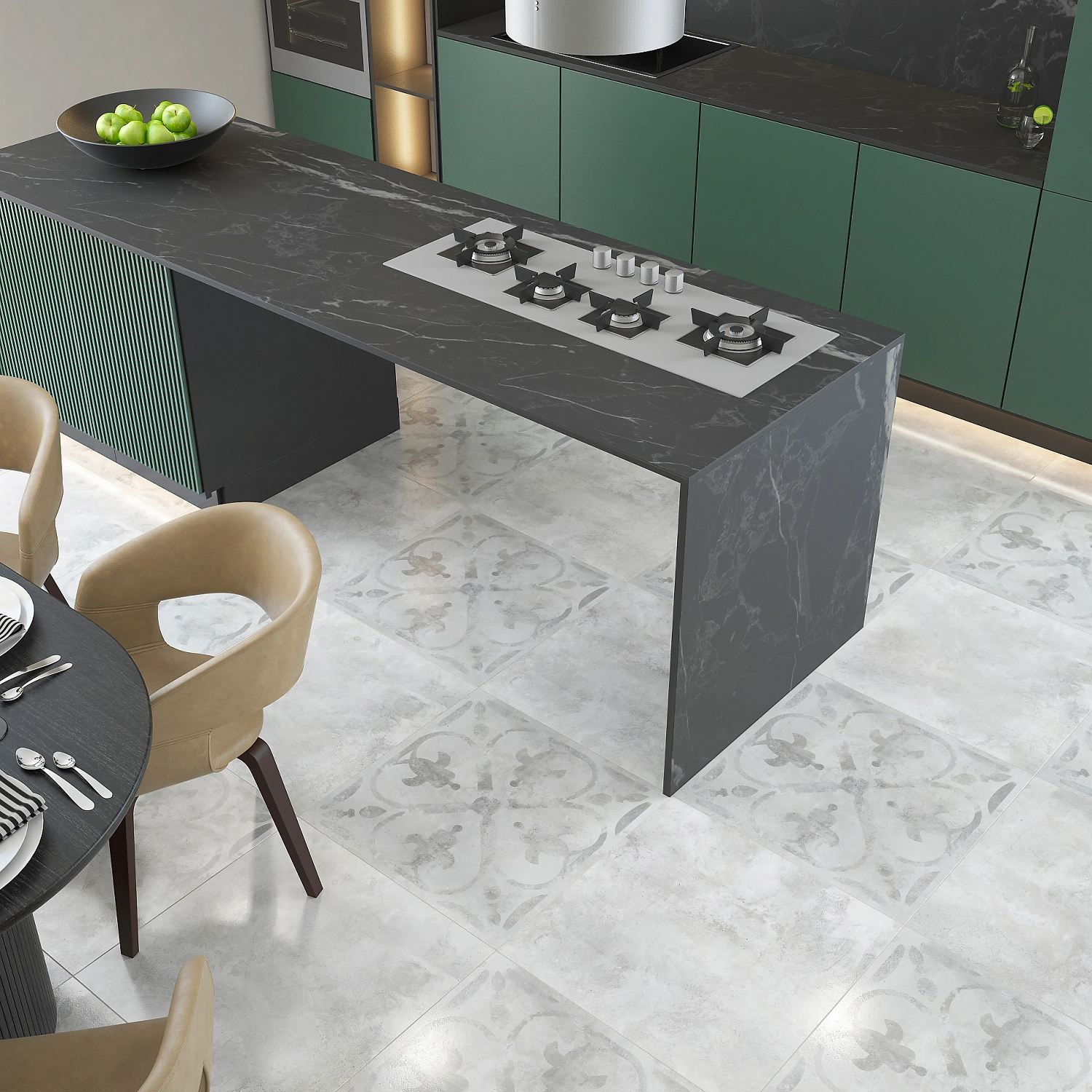 В дизайне керамогранита Турин мы воплотили сочетание старины и современности. Фактура бетона на подполированной глазури придает серии изысканную винтажность, а большой размер 600х600 мм и насыщенный цвет делают материал актуальным для современных интерьерных решений.