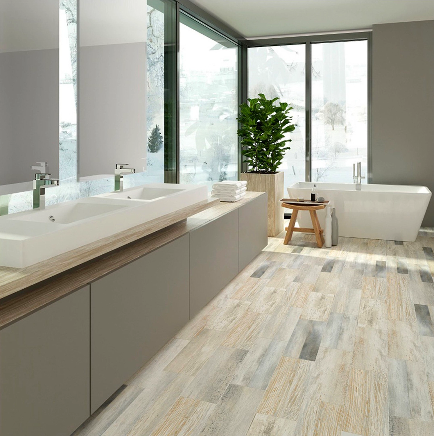 Напольное керамическое покрытие, качественно имитирующее поверхность состаренного дерева. Керамогранит органично впишется в интерьер прихожей, кухни, ванной или гостиной. Такой пол непременно создаст атмосферу уюта и комфорта, добавив нотку натуральности и естественности любому внутреннему оформлению комнаты.