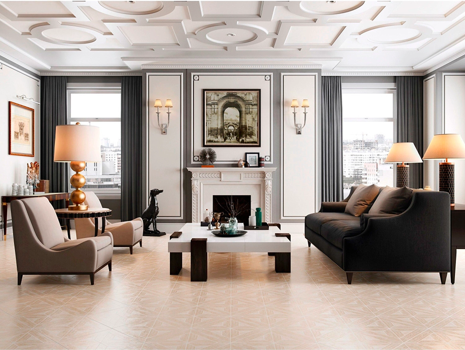 Используйте керамогранит как практичную и красивую альтернативу традиционному художественному паркету.