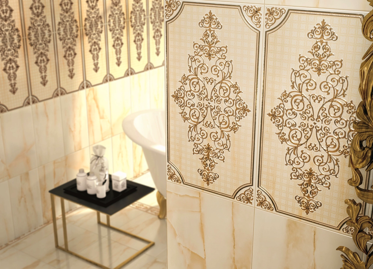 Название коллекции восходит к древнегреческой мифологии. Это классическое сочетание камня и античного орнамента, который украшает стены и пол.