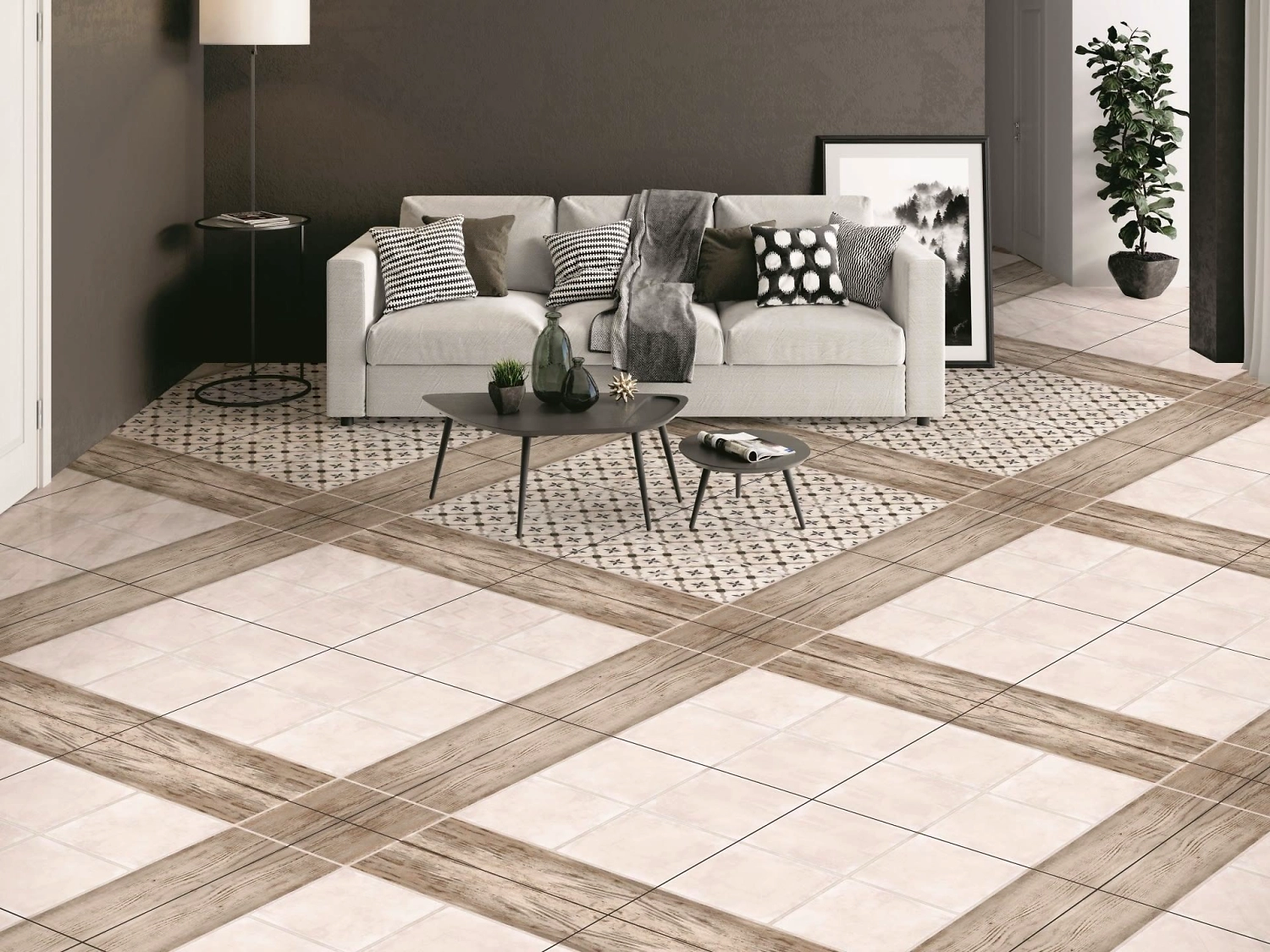 Напольная плитка имеет привлекательный спокойный дизайн, благодаря которому органично вписывается в большинство интерьеров. Пол с таким орнаментом особенно хорошо смотрится в помещении, оформленном в стиле прованс, кантри или этника.