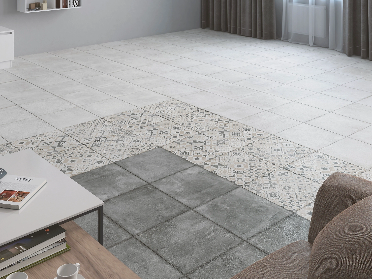 Коллекция Цемент Стайл создана в стиле лофт и имитирует потертые, старые цементные плиты.