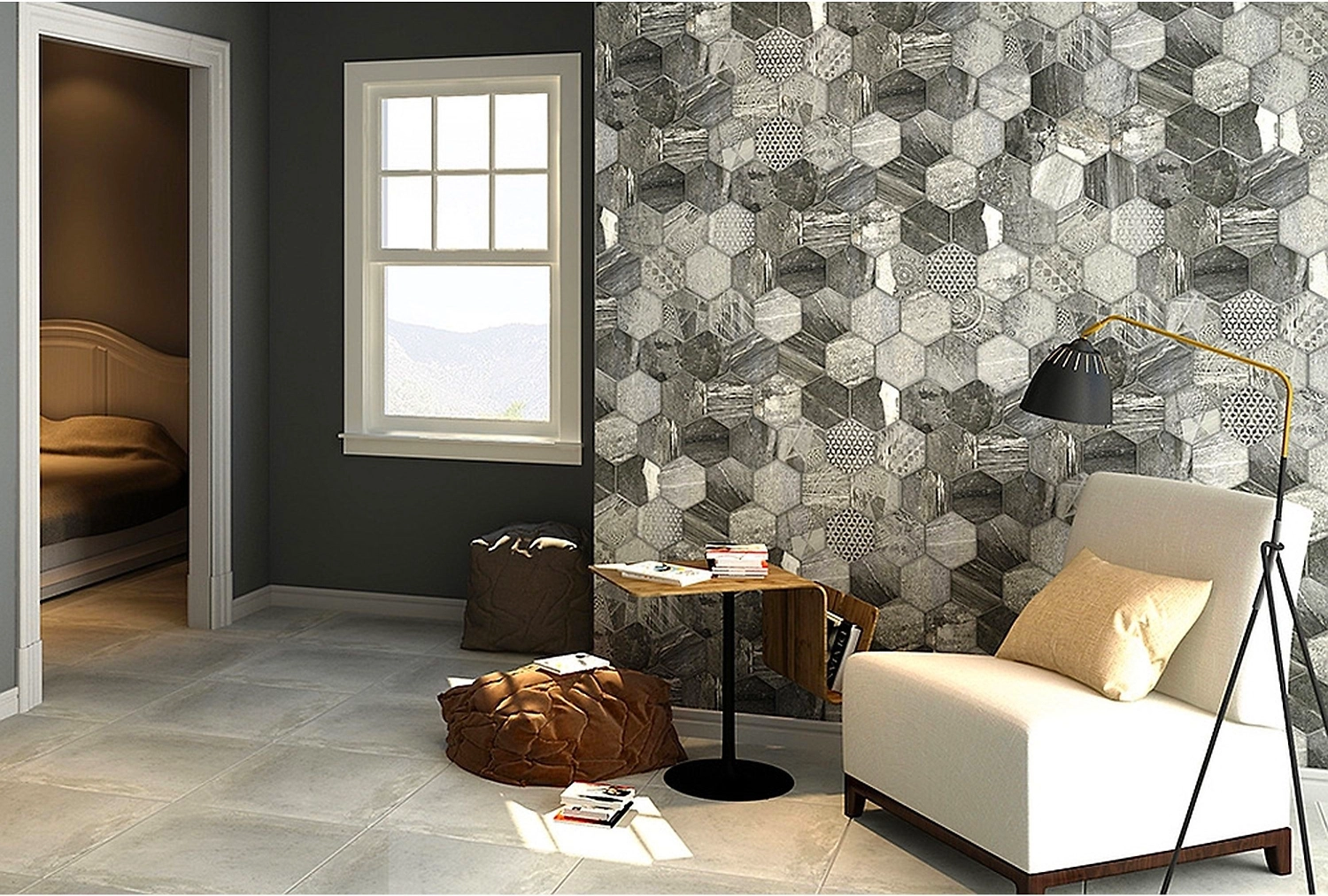 В коллекции есть 2 цвета, серый пэчворк и коричневый цвет с плитками различной насыщенности. Поверхность плитки матовая, имеет натуральную структуру.