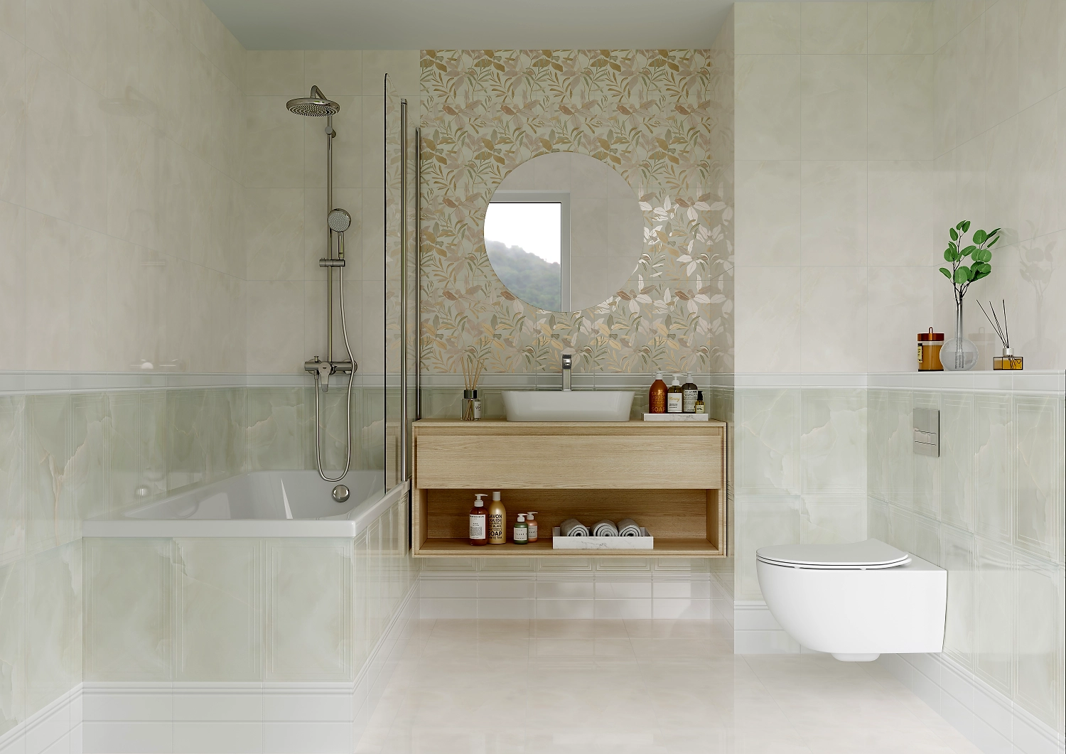 Керамогранит Unitile Life Флора предназначен для отделки пола в ванных комнатах, санузлах, кухнях, прихожих и других помещениях.