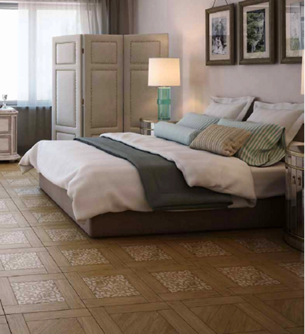 Керамическая плитка Vitra Grace способна привнести в интерьер романтические нотки. Глазурованная поверхность основной плитки имитирует поверхность паркетной доски из дорогих пород дерева. В центре декоративной плитки расположен цветочный орнамент, который создаст выразительный акцент в помещении. Такое оформление напольного покрытия смотрится очень эффектно и дорого.