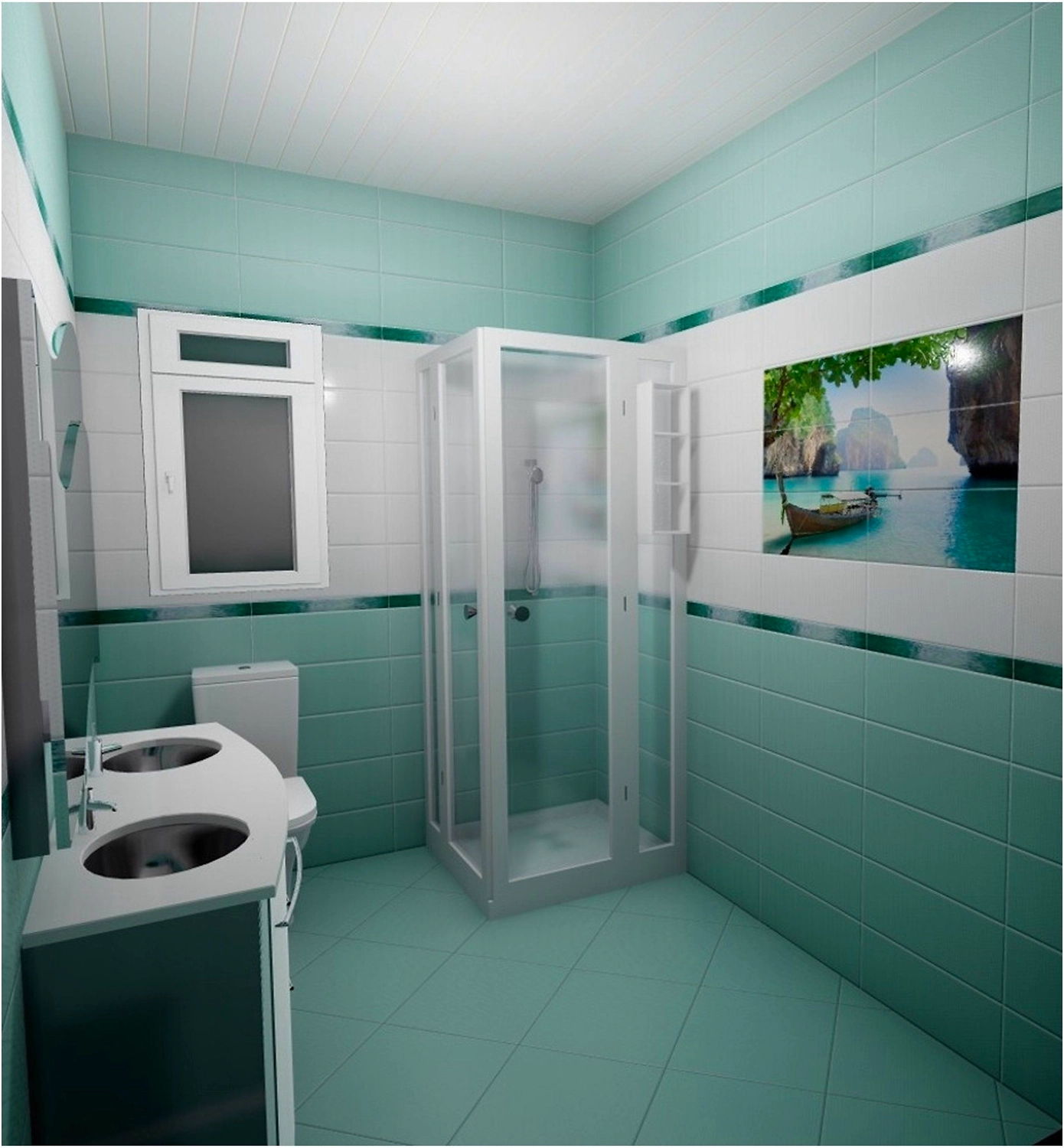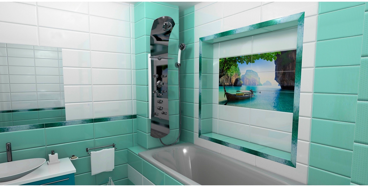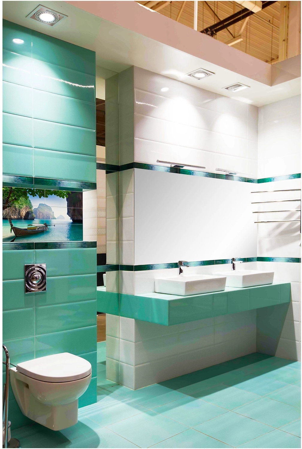 Плитка Керамин Таиланд сочетает стильный дизайн и прекрасные эксплуатационные характеристики натуральной керамики. Покрытие бирюзового оттенка дополнено простым геометрическим узором, напоминающим плетение рыболовных сетей. Такая плитка идеально смотрится в интерьерах современных ванных комнат, прекрасно гармонирует со светлой и яркой мебелью.