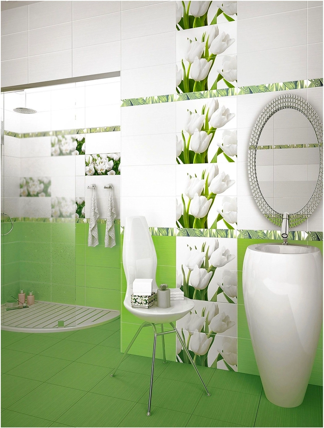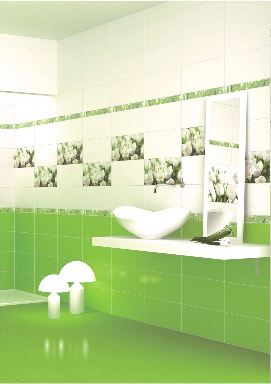 Если вы хотите добавить в свой интерьер немного красок, но при этом не переборщить с цветами, то коллекция Azori Элара Верде создана специально для вас. Сочный зеленый оттенок с чуть видными белыми прожилками привнесет в помещение нотки поздней весны и первой распустившейся зелени. Сделает ванную комнату веселее, просторнее и уютнее. В сочетании с белым цветом интерьер приобретет больше эстетики и выразительности, при этом яркий интерьер ванной комнаты будет более целостным и гармоничным.