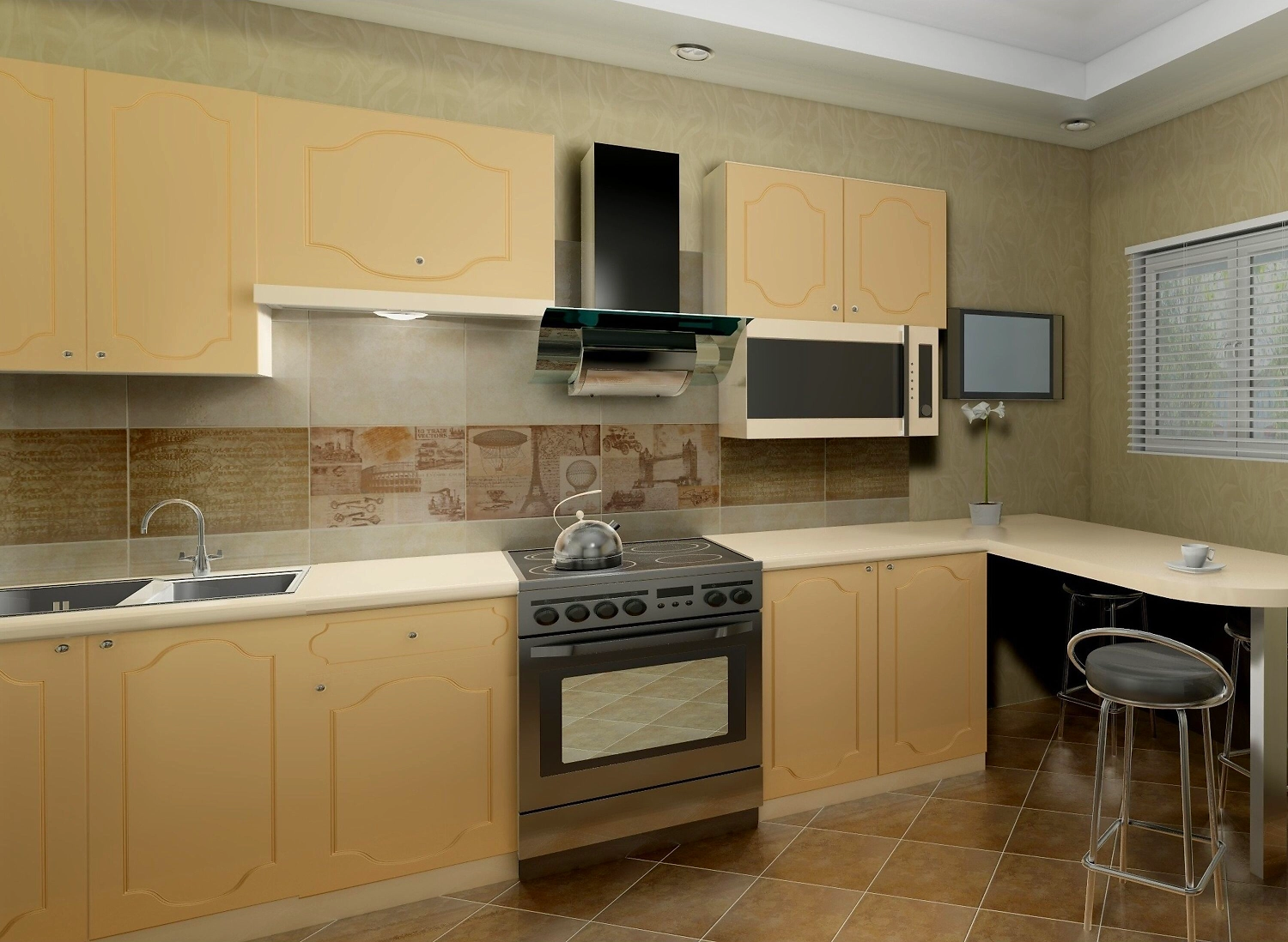 Матовая поверхность, выполненная в теплой спокойной цветовой гамме, делает дизайн по-европейски простым и уютным. Каменный пол вписывается в концепции разных стилей: от классики до лофта.