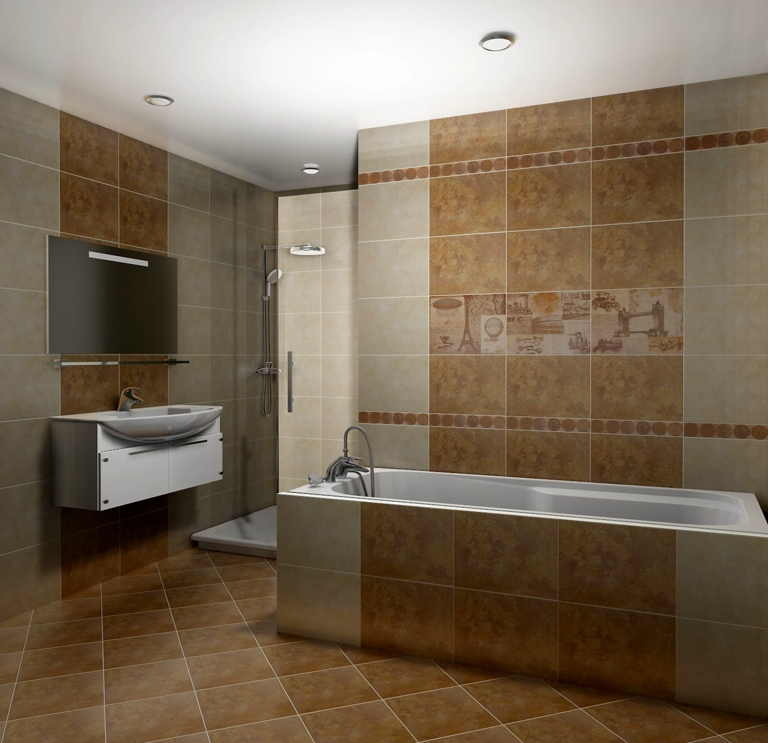 Коллекция плитки Вояж помогает создать простой, но в тоже время динамичный интерьер, с нотками авантюризма и приключений. Фоновые поверхности имитируют натуральные горные породы, декор вставок стилизован под старинные карты и ретро-фотографии европейских столиц.