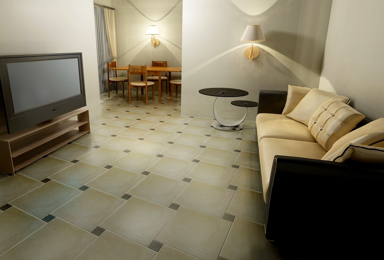 Керамическая плитка идеально подойдет для оформления пола в ванной комнате, туалете, кухне или прихожей. Она не нуждается в какой-либо специальной обработке и хорошо себя показывает в местах с повышенной проходимостью. Плитка отлично прослужит на протяжении как минимум 10 лет, оставаясь в неизменном виде. Ровная поверхность отталкивает влагу и достаточно быстро сохнет.