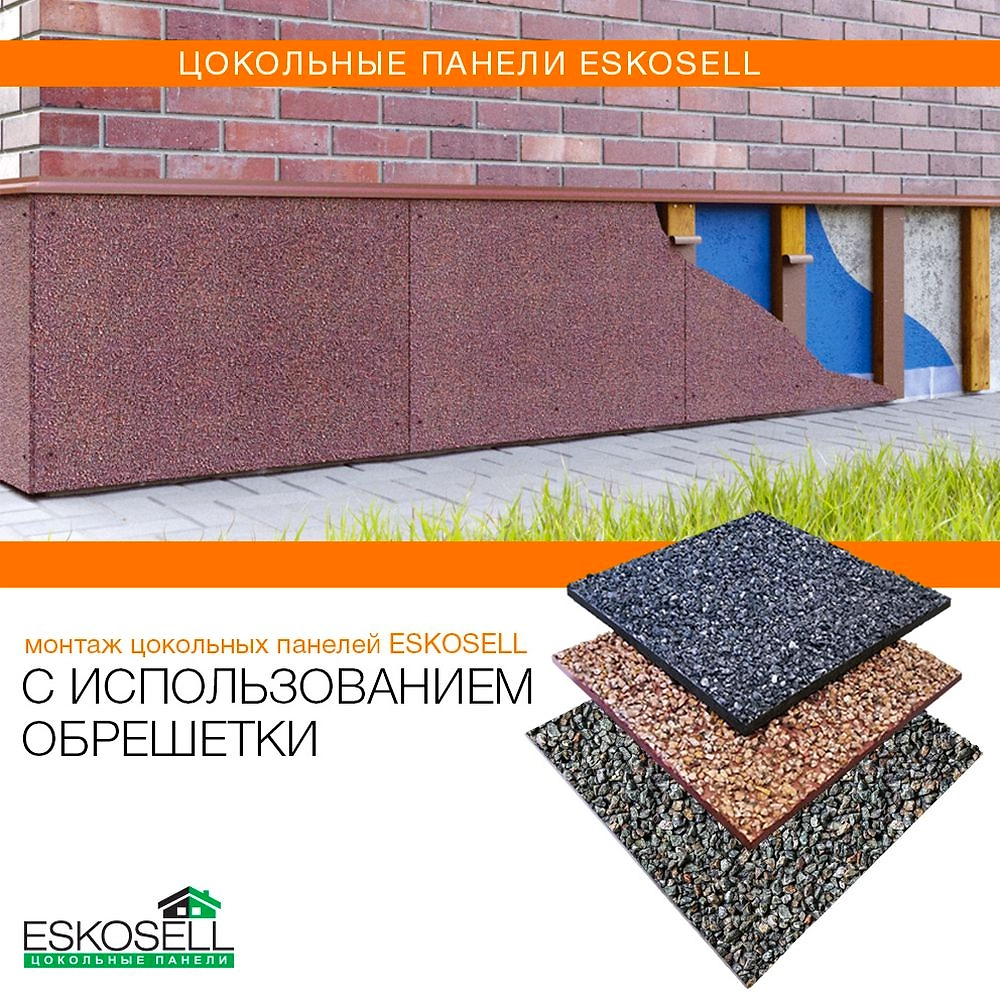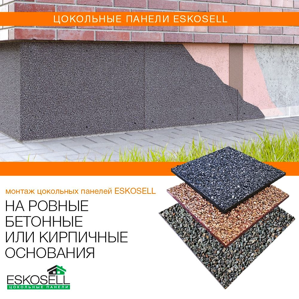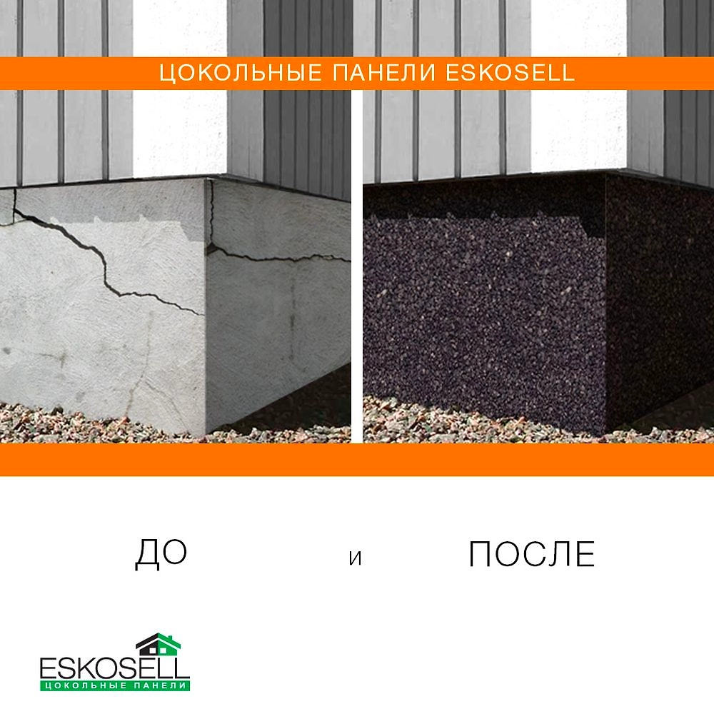 - Отличительной особенностью цокольных панели ESKOSELL является использование крупных фракций (до 6мм) натуральной каменной крошки