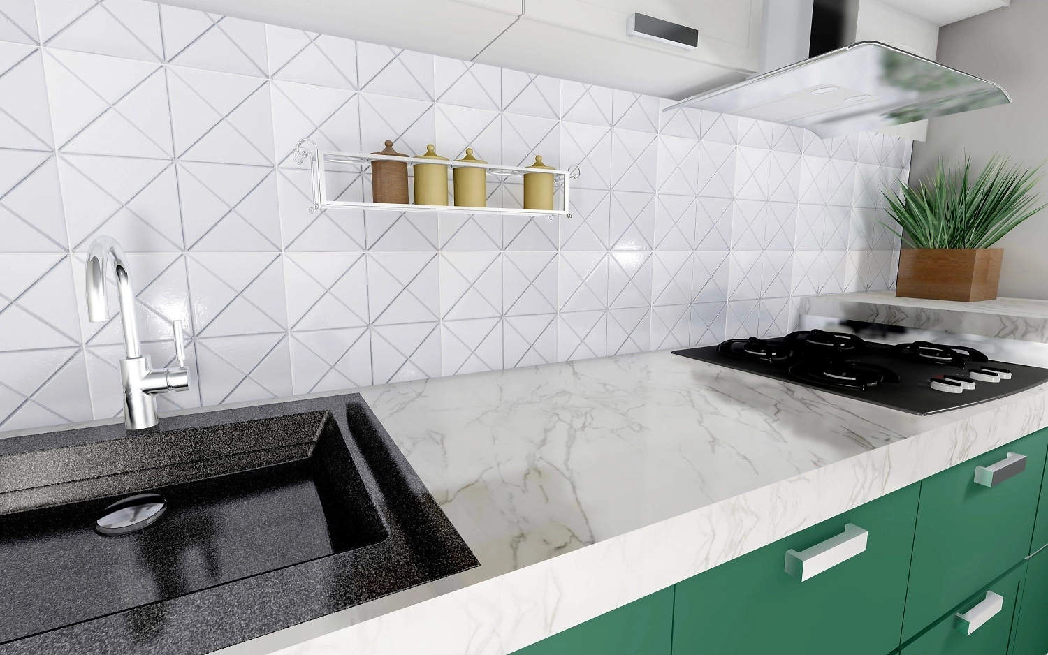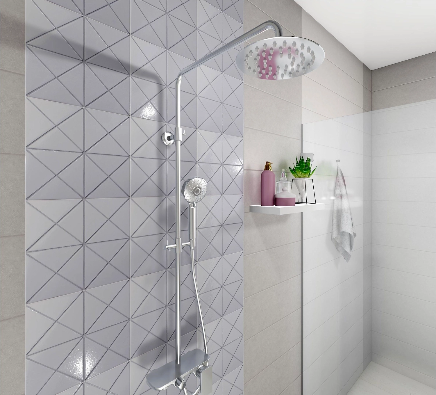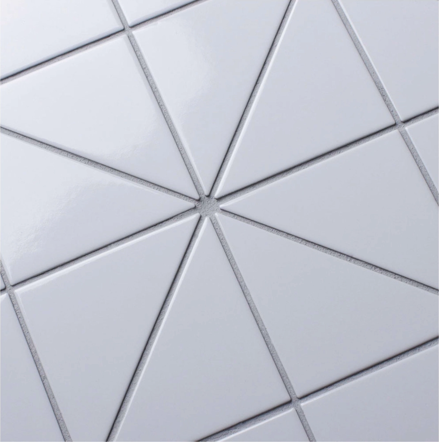 Керамическая мозаика бренда StarMosaic белого цвета в форме треугольников и глянцевой поверхностью.