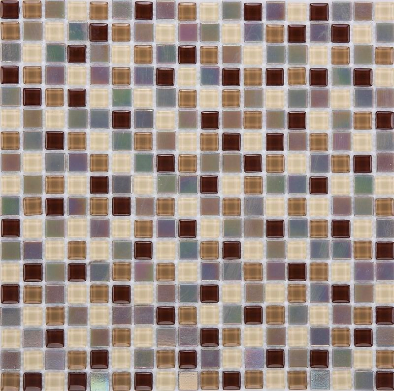 Кубики стеклянные цветные комбинированные из термоплавкого и хрустального стекла для мозаичных работ на основе-сетке из полиэстера, размеры кубиков: 15x15x4 мм, размеры мозаичного полотна: 300x300x4